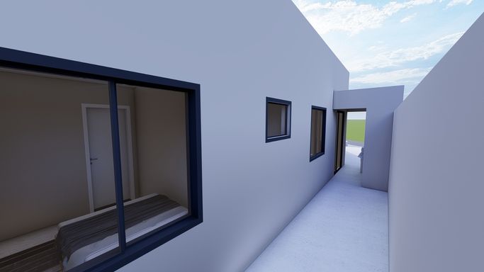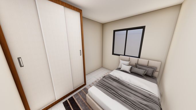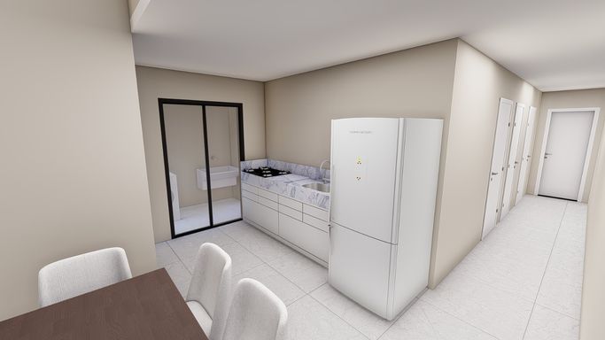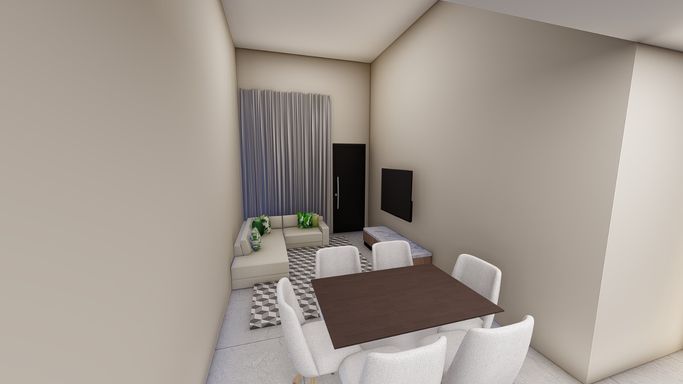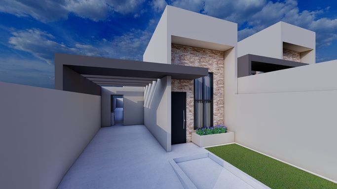 Casa na planta com previsão de entrega para o segundo semestre de 2026. Contendo uma sala com pé direito alto 3 quartos, bwc social, corredor lateral e espaço de terreno aos fundos