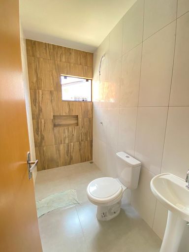 Casa nova com amplo espaço de terreno, corredor lateral e espaço de terreno aos fundos